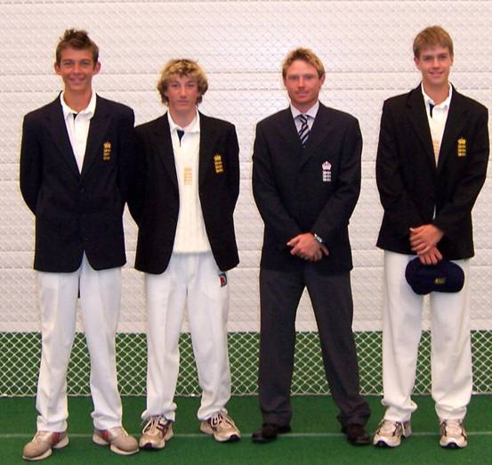 It is possible that the Devon Youth set up will have a record number of players involved in the ECB West of England programme this winter. Recently a number of the promising under 12 side attended the assessment for this winters Under 13 squad and three Devonian's represented the West in the washed out Under 14 Festival at the ECB Academy Loughborough at the end of August. The three James Burke, Luke Bess and Shane Evenden are pictured below with the England and Warwickshire batsman Ian Bell. Bell cut his teeth in Warwickshire youth cricket playing against Devon on three occasions. Bell awarded the three their caps and if all three tour the West Indies next Spring it will equal the previous record for the County when Justin Yau, Matt Cooke and James Fraser toured three years ago.