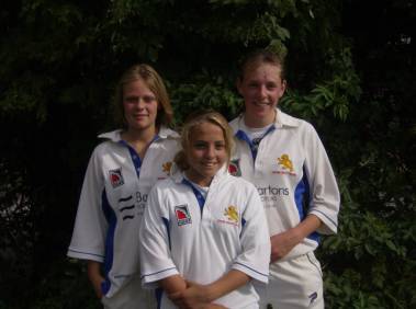 Giselle Ansley with Vicky Bowden and Amara Carr (above) An important 25 points was gained by a young Under 17 side at Chipping Sodbury as Devon beat Gloucestershire by 8 wickets. With four senior players missing including run machine Heather Knight it was a banana skin that Devon did not want to slip on. To their credit they coped admirably. After winning the toss Ellie Feilding elected to field and Rebecca Donohue and Giselle Ansley soon made significant inroads into the hosts batting as both claimed two early wickets. A defiant 52 from Sophie Tucker threatened to take the game away form Devon but the visitors kept taking wickets, with skipper Ellie Fiedling picking up and the introduction of the reliable Gabie Clark bringing three more. Donohue returned to dismiss Tucker and also claimed the last wicket to finish with 4 wickets. |
