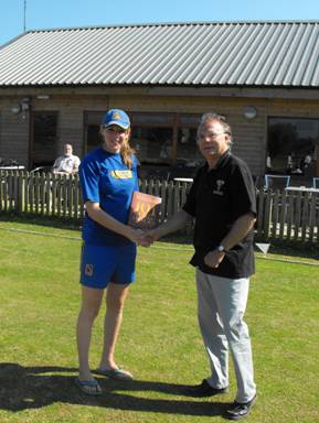 | Devon defeat National Champions. | Giselle Ansley receiving her Woman of the Match Award |