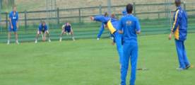 The visit to Sandford the night before this game revealed a well protected square against the once again scheduled rain over the next two days and for the first time in fifteen years the grumpy grounds men suggested we should field first. The next day drizzle at 9.00am turned into a little heavier rain and Ports had to adapt his warm up to the conditions and make compromises, not for the first time this summer. With the Sandford work force in overdrive there was also the need to remove sheets in between drills. The side wanted to bat, but with the weather forecast still indicating a strong possibility that the game would not enter its second day the decision was made that guaranteed points would be achieved bowling and there would be greater control of the game batting second. All not at all well received when Acton won the toss and rightly fielded. The game started only seventy-five minutes late although this was extended by a further seven as the complexities of raising the site screens were beyond the Manager and Coach. It was truly amazing that the ground was playable in such a short time and a real tribute to Chris Theedom and Colin Lever. Having looked an outstanding seam combination a fortnight earlier the attack did not look so menacing in what appeared ideal conditions. In the eighth over Debenham held another fine slip catch off Orchard to send back the visitors captain, Cooper, who looked a useful prospect. Debenham’s fielding at slip is now amongst the best seen at this level on par with the Courts, Woods and Parkers. However this was the only wicket in the first session where the side looked and fielded in a manner that indicated they would have preferred to have their feet up in the pavilion. Lunch was taken at 84-1 with the over rate a concern as only 28 had been bowled in the session. One short of the hundred Oxfordshire lost their second wicket and it was a stunning low one handed caught and bowled by Debenham that took the wicket. His hand eye coordination are exceptional, it was no more than a foot off the ground at pace. A magnificent effort, hopefully it would turn the tide. It did bring another wicket as opener Smith reached his fifty then unecceassarly went after Gilmour to give Buzza another catch and yet another damaged finger. It was 145-4 as the underrated Luke Bess confirmed that the family has a number of reasonable seamers as he bowled Taylor neck and crop. This is when the screw should have been turned and the batters given a chance to put their feet up. However we were milked by Oxfordshire particularly through mid wicket and 84 were added for the fifth wicket by Phillips and Wood. A Rowe tea was taken at 197-4 with Smith having resolved the overs problem. Buzza came back for a third spell and his first dart bowled Wood. This brought the latest cliché that wickets now fall in clusters as Smith was stranded and the Acton /Smith revived memories of 2006 with smart work by both; Phillips, who had looked the part, was adjudged leg before off Debenham and Blanchfield became Buzza’s second victim held by Bess. 259-8, quite confidence that the extra batting point would not be achieved but alas it was with some ease as White and Purssell put on 42. This was mainly against the seamers who should have been cleaning up but once the final batting point was achieved White chanced his arm once too often being well held by Orchard, who initially seemed to be in the wrong position off Buzza’s hit me ball. Burke was too quick for Woods and Smith did the rest. Four points each, honours even, but the home side the more disappointed. Confusion ragged, one over bowled, three wides and a two to Bess, the sheeting put back on and the square not to be further involved in the game. It started around seven, off and on it continued until around two, then bright sunshine, a very squelchy outfield and tea cancelled. The journey home was through more rain. Will summer ever arrive? Our thanks to Sandford for all they did to get some play.